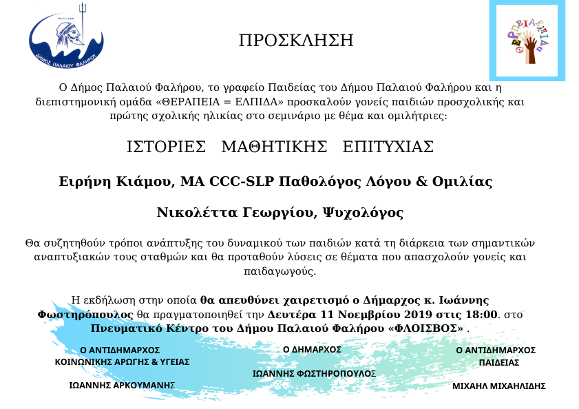 #γονειςκαιπαιδι #σχολικηεπιτυχια #δυσκολιεςσυμπεριφορας #μαθησιακεςδυσκολιες #ειρηνηκιαμου #προφορικοςκαιγραπτοςλογος #θεραπειαισονελπιδα #δημοςπαλαιουφαληρου