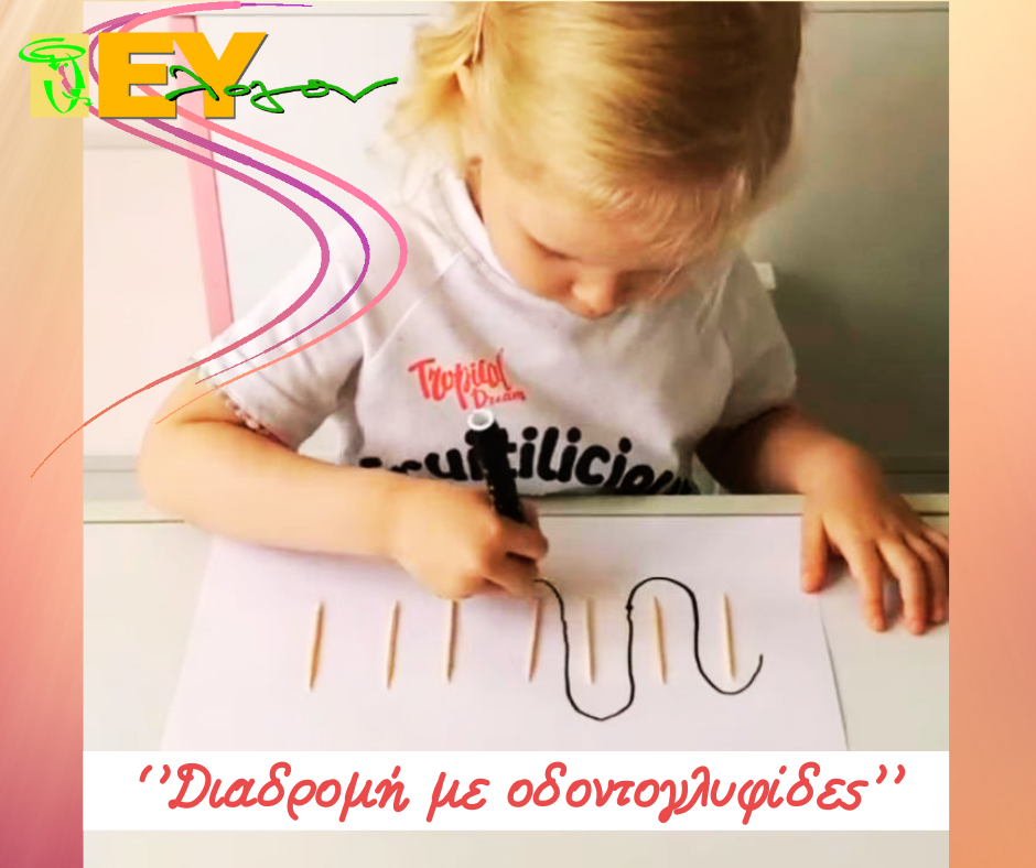 Οδηγίες εκτέλεσης: Τοποθετούμε κάθε φορά με ακανόνιστη σειρά τις οδοντογλυφίδες και ζητάμε από το παιδί να επιλέξει έναν μαρκαδόρο και να ακολουθήσει τη διαδρομή. Υποδεικνύουμε πρώτα εμείς στο παιδί τη διαδικασία.
