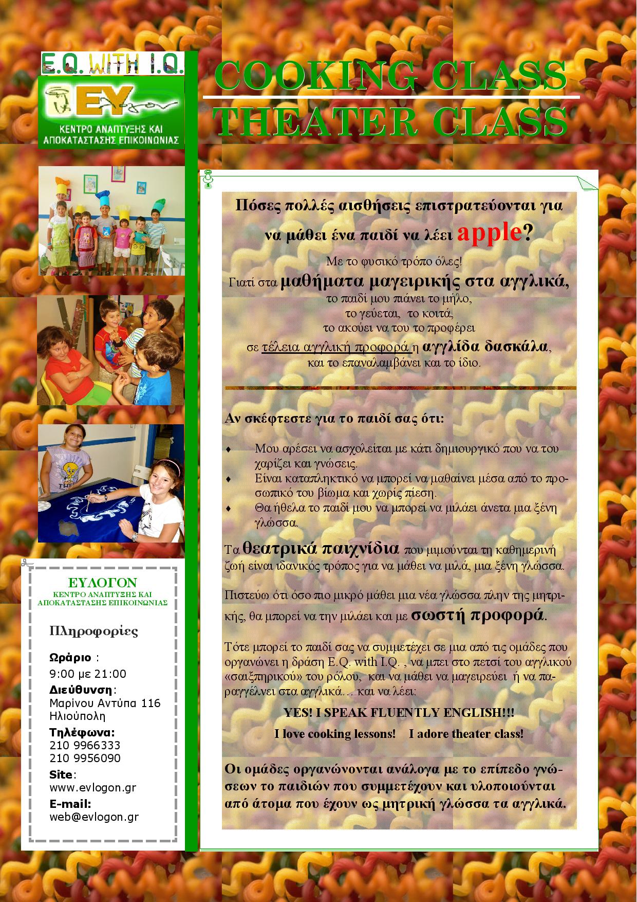 01.10.2011 - Βιωματικές δραστηριότητες, διασκέδαση παιδιών: ΜΑΓΕΙΡΙΚΗ ΓΙΑ ΠΑΙΔΙΑ & ΘΕΑΤΡΙΚΟ ΠΑΙΧΝΙΔΙ (ΣΤΑ ΑΓΓΛΙΚΑ)
